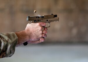 July 16, 2024 820 COS demonstrate weapons tactics and expertise U.S. Air Force Col. Paul Sheets, 23rd Wing commander, and U.S. Chief Master Sgt. Harold Davis, 41st Rescue Generation Squadron senior enlisted leader, had the privilege of joining Airmen from the 820th Combat Operations Squadron for an immersive afternoon with a variety of firearms, from the M18