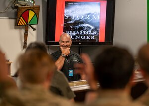 July 25, 2024 Real-Life 'Perfect Storm' Hero visits Rescue Airmen Retired Lt. Col. Dave Rivola, a real-life inspiration behind the iconic film "The Perfect Storm," recently conducted a mission briefing for Moody’s Rescue Airmen.Rivola recounted the harrowing tale of Air Force Rescue 110's mission on October 28, 1991, where he flew his Pave Hawk into the heart of a
