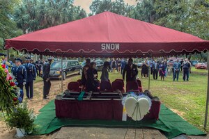 Family, loved ones, and service members gathered with Moody's own, Senior Airman Jasmine Smith, 23d Equipment Maintenance Squadron HC-130J Combat King II aerospace propulsion journeyman, in remembrance of her deceased brother, Staff Sgt. Darryl Smith, during his funeral, Oct. 17, 2016, in Sparr,