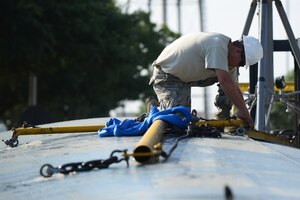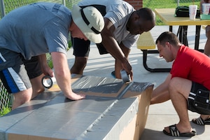 Airmen from the 71st Aircraft Maintenance Unit paired with the 23d Civil Engineering Squadron to transport a retired HC-130P Combat King from the flightline to the President George W. Bush Airpark on May 14, here.After multiple deployments with the 71st Rescue Squadron, the C-130 with tail number