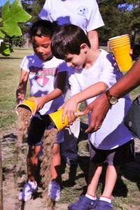 Children were all smiles as they dumped cups of dirt onto a newly planted tree during an Arbor Day tree planting ceremony April 27 at Moody Air Force Base, Ga. An estimated 1 million trees were planted in Nebraska as part of the first Arbor Day, which was celebrated on April 10, 1872.By 1920, every