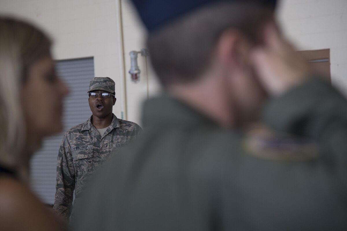 Col. Jennifer Short, 23d Wing commander, and Col. Timothy Sumja, 23d Fighter Group outgoing commander, give a round of applause for Col. Michael Curley, 23d FG incoming commander, during a change of command ceremony at Moody Air Force Base, Ga., Aug. 4, 2017. Curley was the Chief of the Training, Exercises, and Readiness Division at Headquarters U.S. Air Forces in Europe. (U.S. Air Force photo by Staff Sgt. Olivia Dominique)
