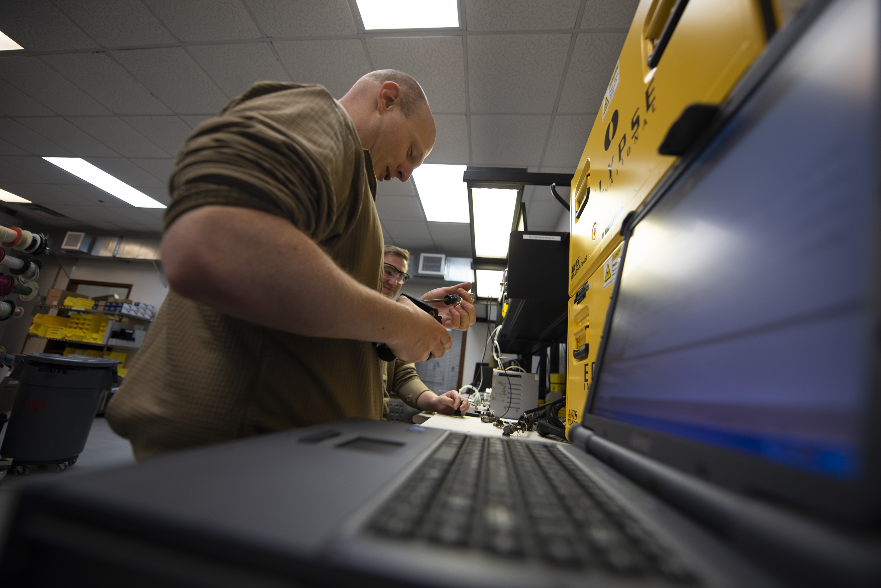 Tech. Sgt. Kristopher Bradner, 23d Maintenance Group Air Force Repair Enhancement Program technician, repairs an aircraft button Nov. 26, 2019, at Moody Air Force Base, Ga. AFREP is tasked with troubleshooting, fixing and returning electronic equipment to minimize aircraft’s downtime and mitigate the decommissioning of Air Force assets. (U.S. Air Force photo by Airman Elijah M. Dority)
