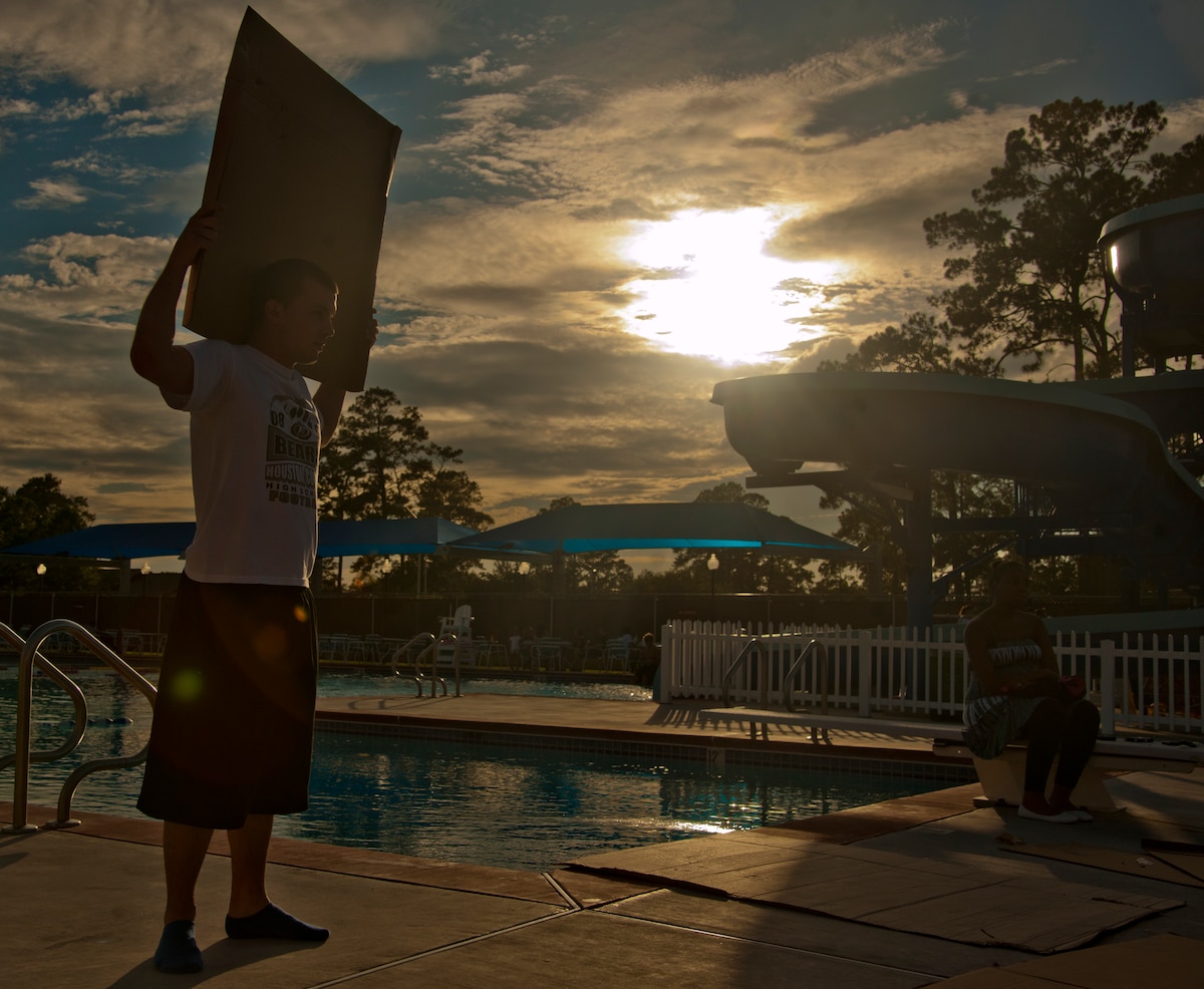 U.S. Air Force Airmen compete in the First Annual Build a Boat competition at Moody Air Force Base Ga., June 21, 2012. Teams of five had five minutes to collect materials, game plan, and think about their approach before the competition began. (U.S. Air Force photo by Airman 1st Class Paul Francis/Released)