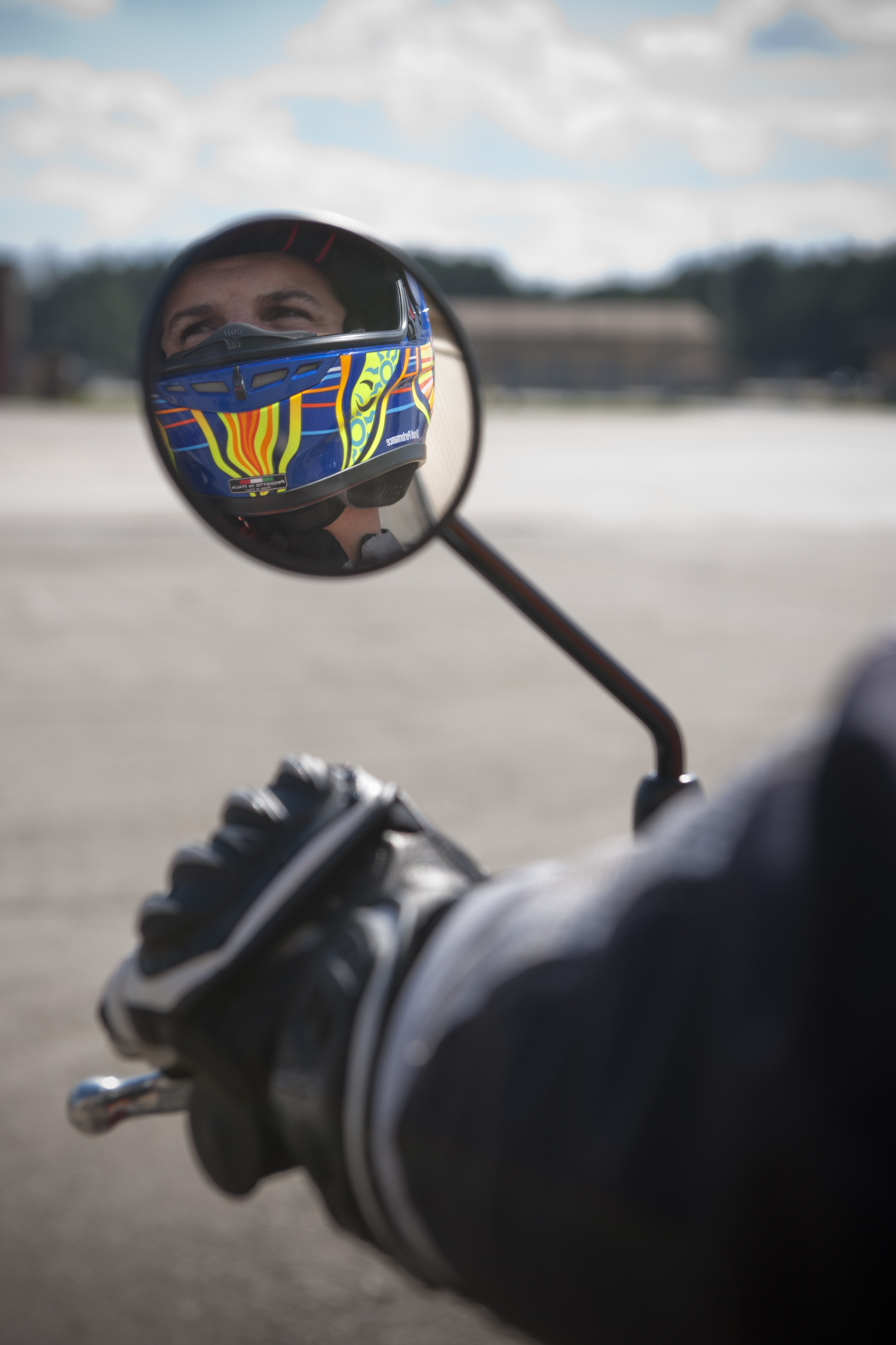 MOODY AIR FORCE BASE, Ga. -- Staff Sgt. Bryan Masters, 23rd Operations Support Squadron airfield management training NCO in-charge, test rides a new training motorcycle Nov. 5. The motorcycle is one of 13 new bikes which will be used to train riders. Sergeant Masters has been a motorcyclist for five years. (U.S. Air Force photo/Senior Airman Jamal D. Sutter)(RELEASED)