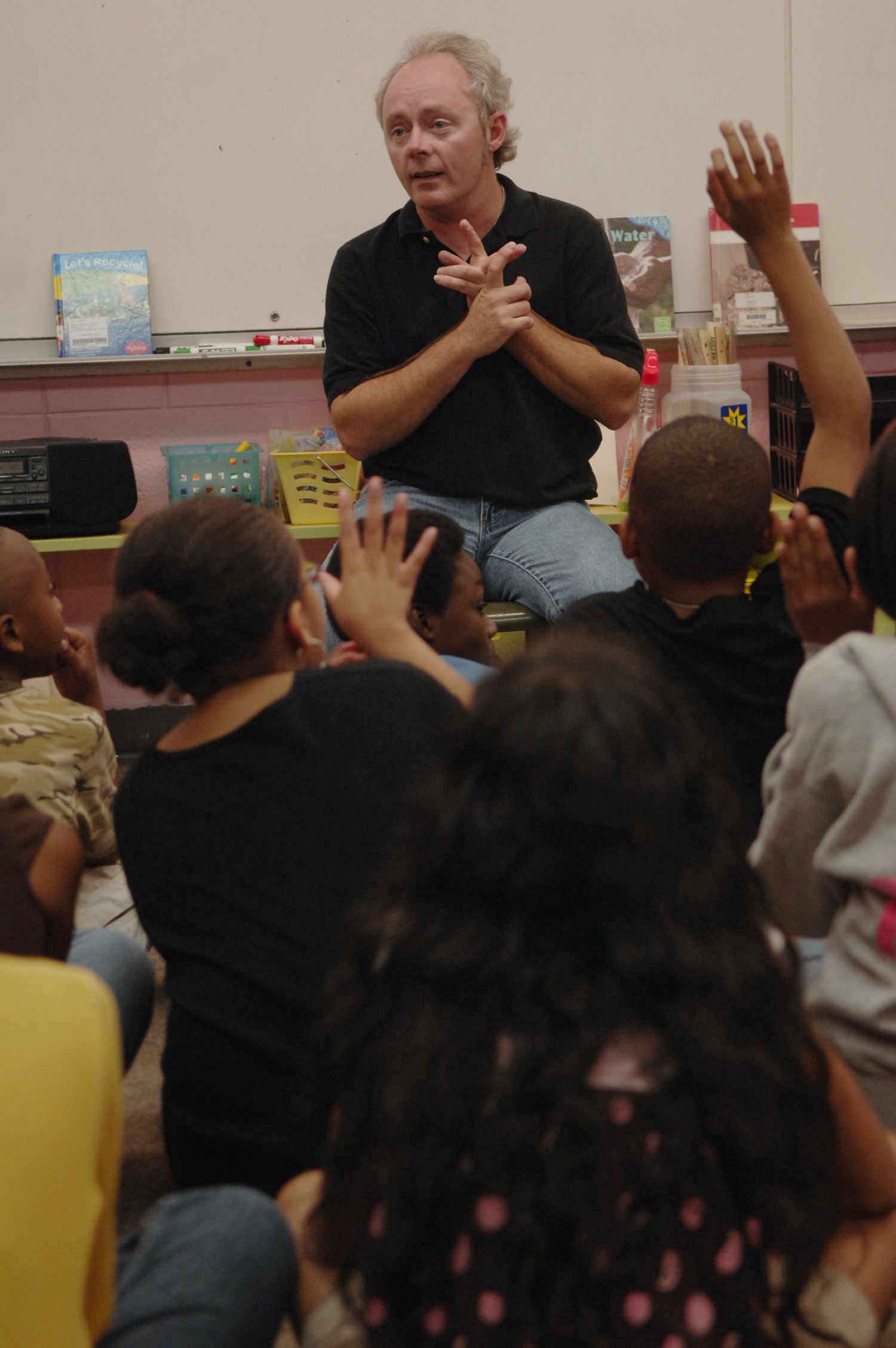 MOODY AIR FORCE BASE, Ga. -- Mark Perry, assistant refuse and recycle project manager, places recyclable materials into a baler, which compresses and straps loose materials, here April 17. Moody's recycling center processes an average of 100,000 pounds of recyclable materials every month. These resources are sold and the funds generated contribute directly to Moody programs. (U.S. Air Force photo by Airman 1st Class Brittany Barker)