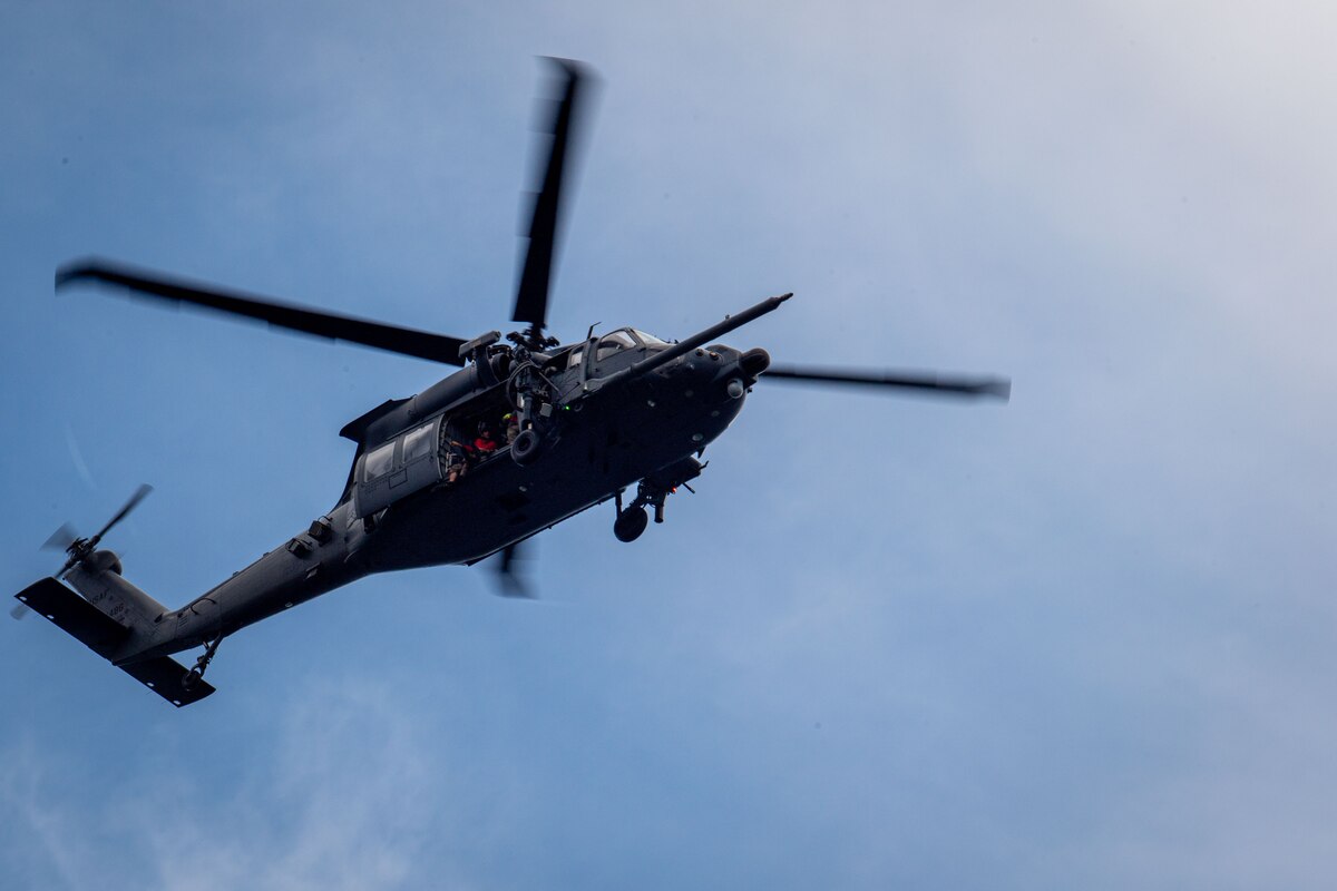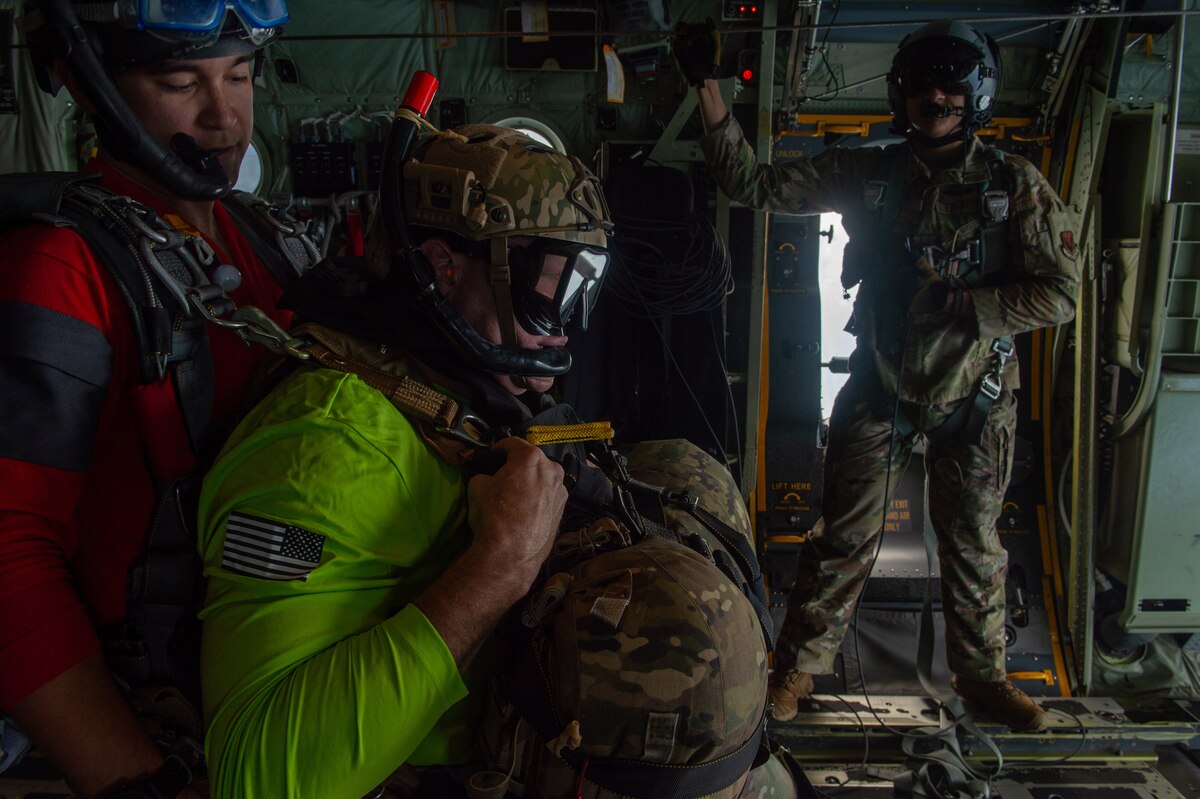 MOODY AIR FORCE BASE, Ga. -- U.S. Air Force Col. Paul Sheets, 23rd Wing commander, and Chief Master Sgt. Justin Geers, 23rd Wing command chief, participated in a battlefield circulation (BFC) with the 38th Rescue Squadron over the Gulf of Mexico, June 24, 2024. The 38th RQS is a vital component of the Air Force's personnel recovery operations, ensuring the safety and recovery of military personnel and civilians in need.