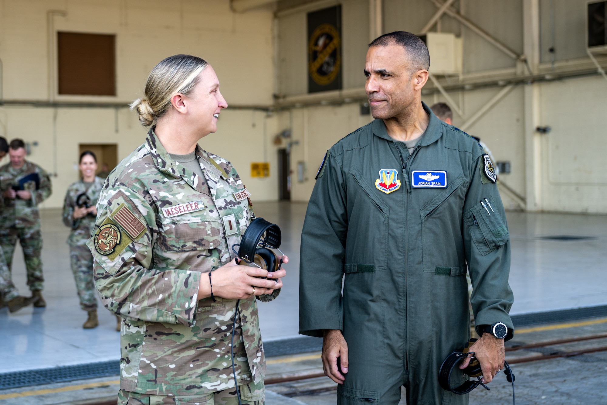 During the visit, Spain and Unterseher met with airmen from across the 23rd Wing and 93rd Air Ground Operations Wing, emphasizing how their work directly advances ACC’s focus on multi-domain readiness, excellence in combat operations, adapting to evolving strategic environments, bringing the future forward and empowering leaders at every level.