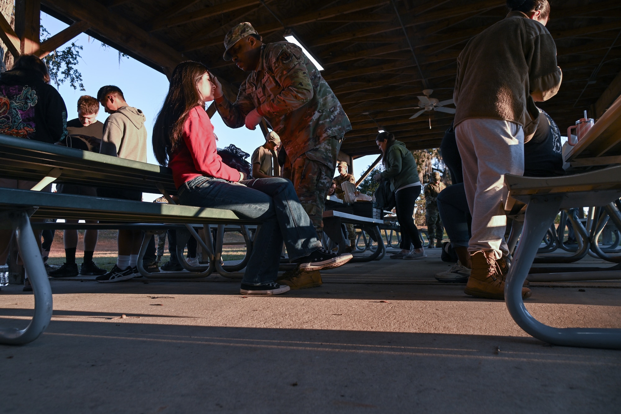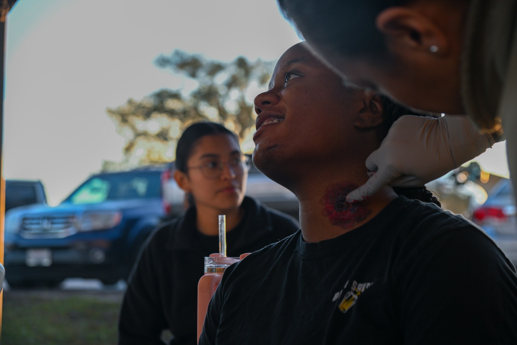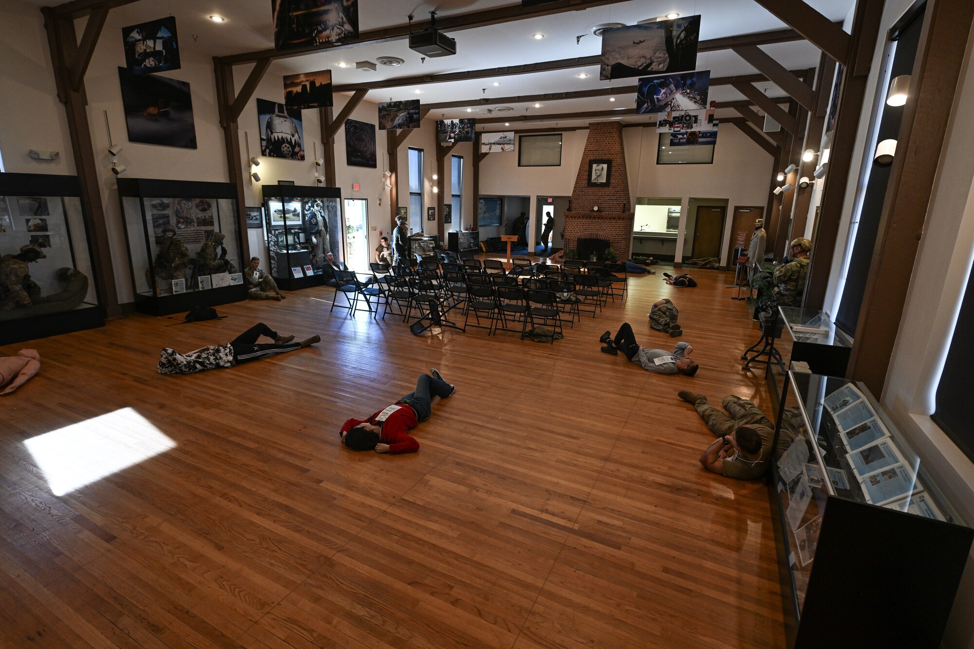 The exercise kicked off at Moody Heritage Hall with simulated gunfire, prompting volunteers to rush from the building, screaming and seeking cover, while others remained inside to portray wounded victims. The shooter was concealed somewhere within the Heritage Hall, setting the stage for first responders to arrive, neutralize the simulated threat and provide aid to the role-playing casualties.