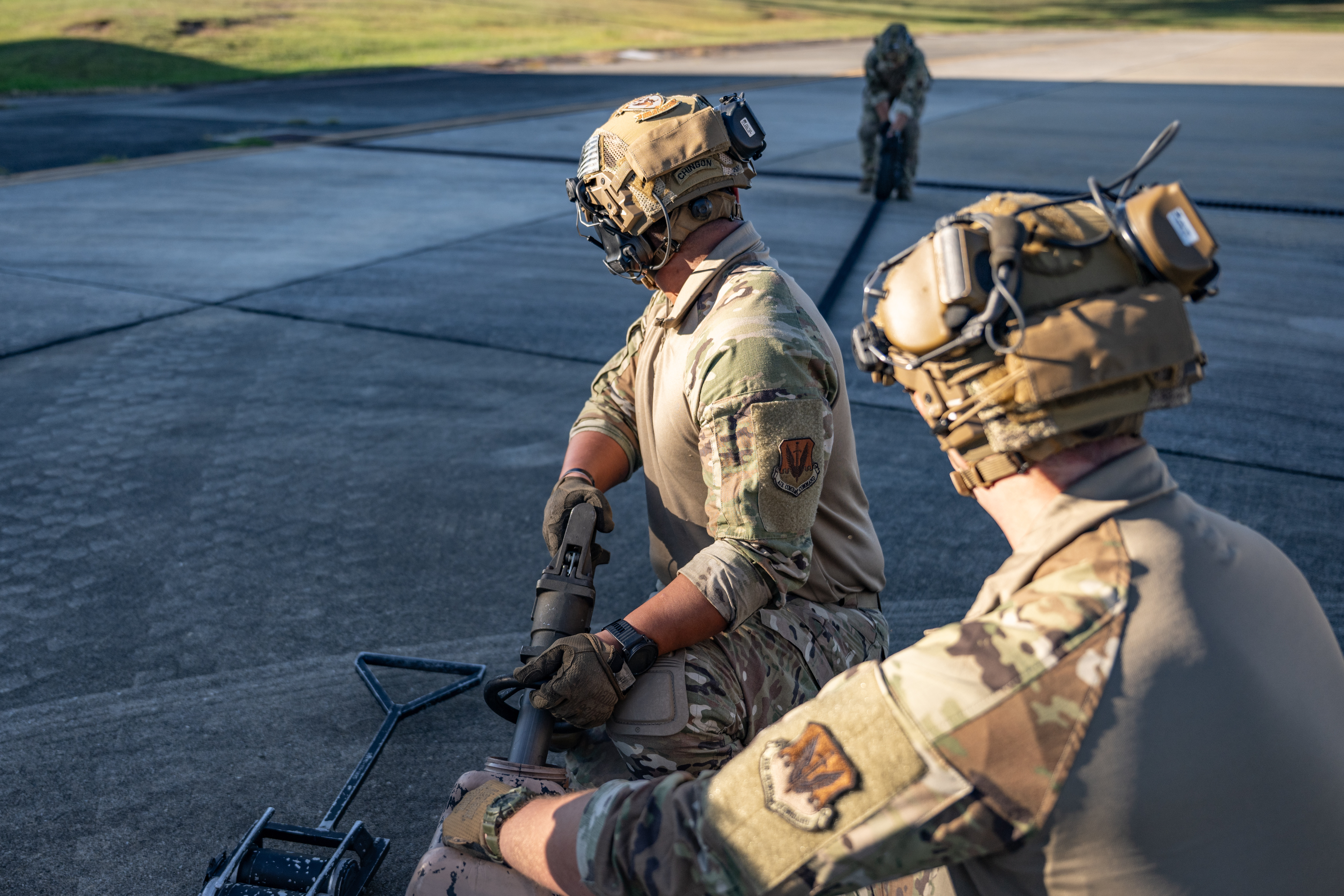 MOODY AIR FORCE BASE, Ga. -- MOODY AIR FORCE BASE, Ga– Airmen from the 71st Rescue Squadron and 23d Logistics Readiness Squadron honed their rapid refueling capabilities during Forward Area Refueling Point (FARP) training, sharpening mission readiness for future operations at Moody Air Force Base, Georgia, Oct. 20, 2025.