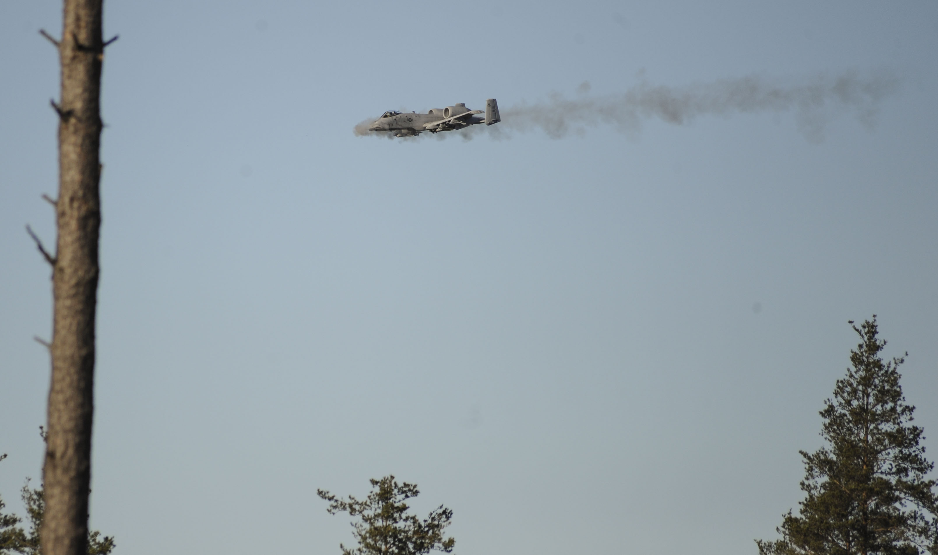 Danish army 1st Lt. Jakob Ravn, forward air controller, talks to a 74th Expeditionary Fighter Squadron pilot on the radio at Tapa training range Oct. 7, 2015, near Tapa, Estonia. During the joint-training, A-10 Thunderbolt II attack aircraft, deployed from Moody Air Force Base, Ga., supported the joint terminal air controllers with close-air support against simulated hostile targets. (U.S. Air Force photo by Andrea Jenkins/Released)