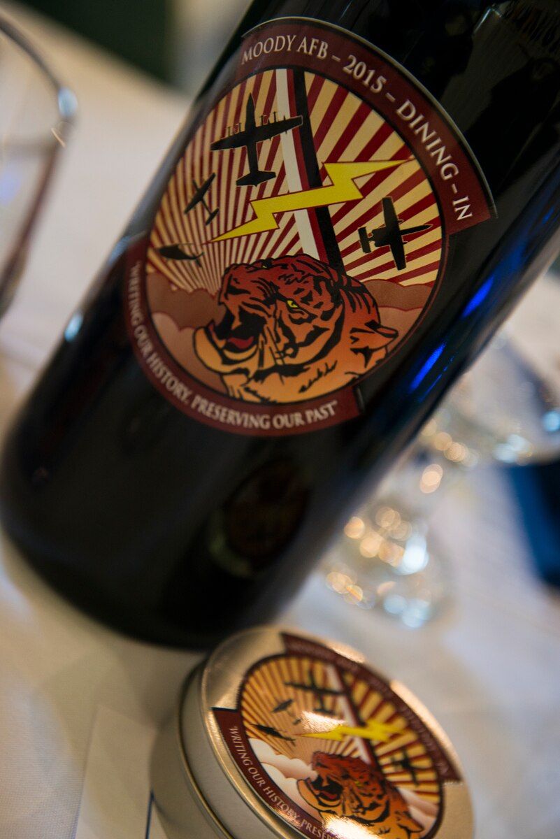 U.S. Air Force Master Sgt. Rusty Sawyer, 23d Medical Group first sergeant and ceremonial sergeant at arms, right, presents a sword to Col. Chad Franks, 23d Wing commander, during the 2nd Annual Dining-In March 20, 2015, at Moody Air Force Base, Ga. The sergeant at arms acted as the demonstrator and enforcer of the rules of the mess. (U.S. Air Force photo by Airman 1st Class Ceaira Tinsley/Released)