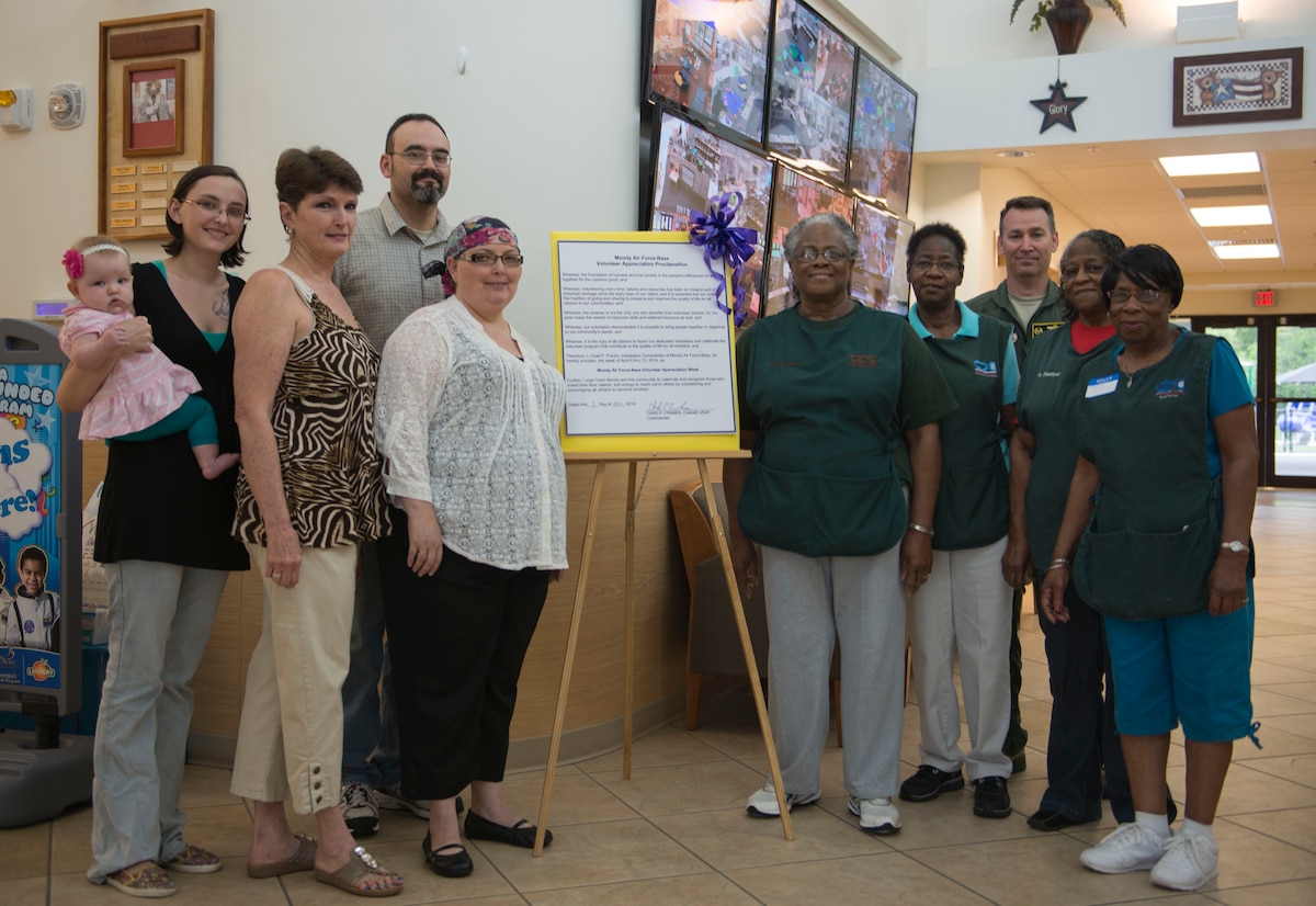 Moody volunteers and U.S. Air Force Col. Chad Franks, 23d Wing commander, kick off Volunteer Appreciation Week with a proclamation ceremony at Moody Air Force Base, Ga., April 7, 2014. This year’s VAW will be held April 6-13 and will recognize the many volunteers throughout Moody who have dedicated their time to the community. (U.S. Air Force photo by Airman Dillian Bamman/Released)