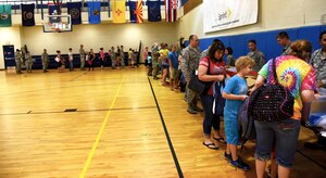 Team Moody parents helped approximately 200 children cross off their school supply lists during the Back to School Brigade, July 27, 2017, here. The Back to School Brigade is held to help alleviate the back to school process for Team Moody and their families.